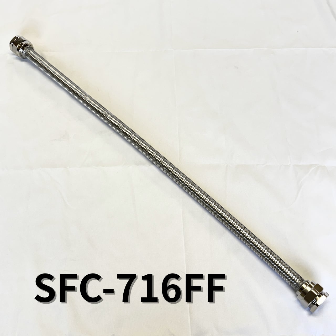 SFC型フレキシブルコンジットは、フレキ管及びワイヤーブレードがステンレス鋼のため耐食性、耐候性に優れてます。組み合わされるコネクタは銅合金製となります。